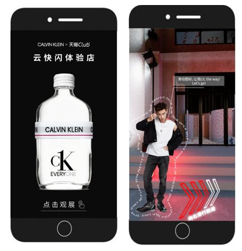 根据介绍,消费者只需通过天猫或是淘宝首页的扫码入口直接进入“CALVIN KLEIN官方旗舰店”,便可抵达CK ONE“云快闪店”。