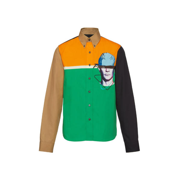 Prada2020春夏男士系列以青春色调及拼接细节,打造复古文艺的时尚质感。经典廓形衬衫上,Prada标志性三角形logo被重新诠释,更增添几分个性与玩味。