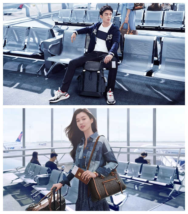 吴磊的穿搭呈现出极致休闲的旅行风格,纯净白色搭配沉稳海军蓝,时髦舒适,清新的少年感迎面而来;陈瑜则身着一袭清爽的浅蓝色风衣,搭配由经典的MICHAE KORS Signature暗纹以基调的春季新款Cece手袋与旅行包,率性飒爽,尽显Jet Setter本色。