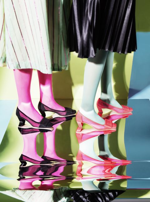 罗杰•维维亚先生于 1942 年 1 月在纽约为他设计的高跟鞋申请专利,这款高跟鞋以一枚大号饰扣装点鞋面的前部,这就是后来风靡全球的饰扣鞋的雏形。维维亚老先生最初专注于设计高级定制鞋履和作品,如细高跟、Choc 内弯跟、Tibet 鞋跟等,60 年代时,他开始转向更实用的鞋跟高度和鞋履设计。“我的目标开始转变,我希望重新诠释高级定制,服务于更多客人,”他说。“在设计这些鞋履时,我考虑到有工作和出行需求的女性。对她们而言,款式一定要简单优雅。”