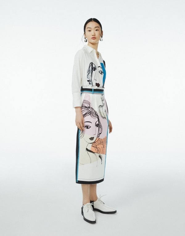 龙荻作品表现的,正是如同她这样多样率性的女性形象,表达着龙荻对女性的看法和情感共鸣。与服装品牌的深度合作,对龙荻而言也是首度尝试。龙荻的画,更多的是记录生活中的点点滴滴,这种轻松、愉悦的感受也被融入在本系列的单品中,轻快温柔的线条构造出的女性肖像,跃动在各种面料之中,分外生动。以服装做画布,以肖像为载体,传达着新女性精神的一系列艺术品被摆在年轻女孩儿们的面前。