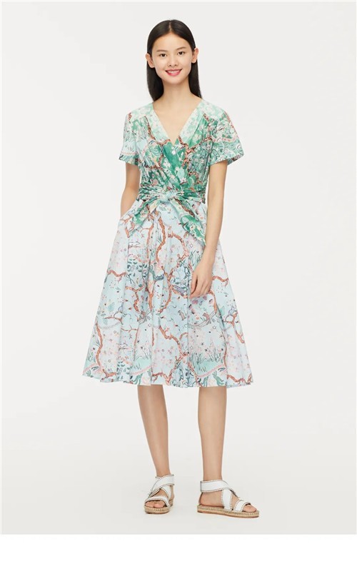 肩部拼接碎褶立体挺括,东方交领搭配腰间系带,优雅风趣且充满夏日新意