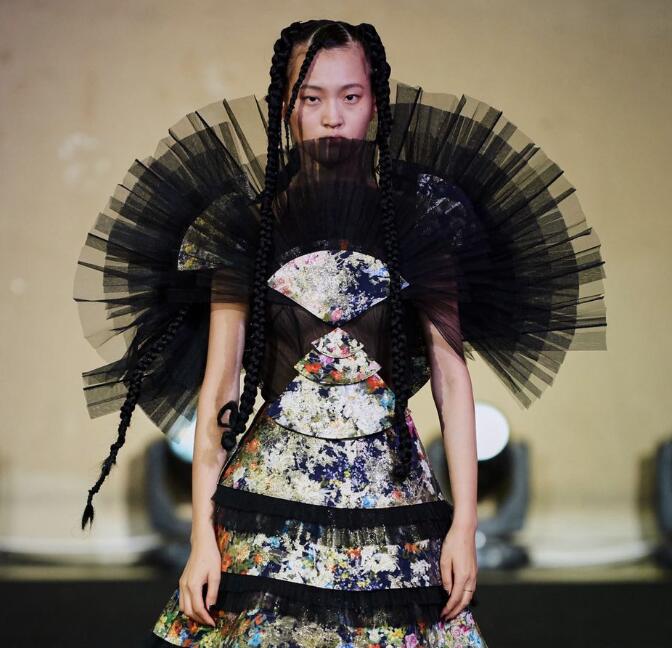 2021春夏系列中,运用了大量黑白或缤纷的印花来表达情绪,这些印花图案也来源于设计师早年的画作——“图腾(Totem)”系列。图腾作为记录的载体,表达的欲望和意味早已超过图形本身。用图形记录当下的感知,表达对未来的期许,这种抽象的方式营造了足够的空间感,使得当下的情绪和感受更加强烈。这也正是YUAN希望通过时装表达的:主动权在观者手中,不只是被告知,而是自由的去感受。