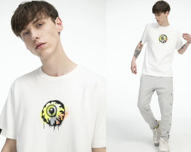 MISHKA 2020秋冬系列中,将双色拼接的设计手法融入进了质感十足的宽松短袖产品之中,前后拼接呈现双色时尚FEEL,半眼球ICON方标和后背日期印花强调着十足的设计感,拒绝单调,色彩随心。