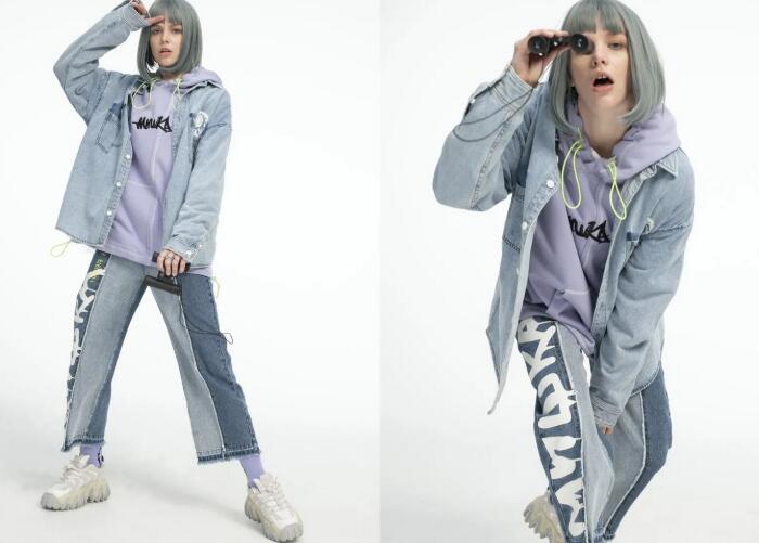 经典眼球和手写体MISHKA Logo与超流行的电光配色混搭,精巧落位于胸前,单穿叠搭都可率性出街,是潮人衣橱必备单品。宽松立体剪裁的牛仔衬衫,采用个性深浅错位拼接口袋设计,涂鸦眼球和后背大幅字母图案为牛仔系列注入吸睛亮点。