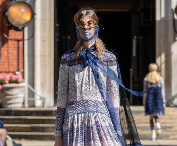 20年代流行夸张Oversized风格的时装与一战期间的贴身制服形成了强烈的对比。本季最大的亮点是以纯白棉花为灵感的奶油色,浅蓝色和粉红色被应用于印花与刺绣上,柔软且层叠错落营造出轻盈感,丝绸薄纱和透明丝质欧根纱在柔和色调的点缀下尽显飘逸灵动。
