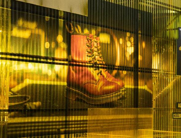 现场互动音乐区,DJ与VJ合作,献上独属马汀的音乐盛宴;中心舞台的彩绘定制区,独立刺青艺术家以手绘的形式,为每一双经典的1460赋予独一无二的灵魂,更有顾客跃跃欲试在艺术家的指导下为自己靴子画上喜爱的图案;店内巨型的智慧显示屏,利用AR技术,帮助换上马汀靴的顾客一键变身,幻化成造型与姿势的摇滚乐手。