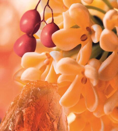 “在调制香氛的过程中,我面临的很大挑战是要去呈现馥郁的桂花香和水果清香,这种嗅觉体验让我不禁联想到杏脯的清香中略带淡淡乳脂和奶油的甜美。另外,此香氛还体现了品牌经典的双重性——在甜美纯净的花香气息中流露出茶香和皮革的微妙烟熏调。这种兼具纯真和狂野的双重性格组成了珊瑚的颜色。为寻求各方面的平衡点,我对未知领域的嗅觉探索已成为一场探险。它细腻而强烈,绽放出一种近乎狂野的华丽芬芳。我精选了罕见的‘黄金’成分,带有特殊果香和些许生物气息,只为倾心调制出全新的宝格丽香氛。”——调香大师Sophie Labbé