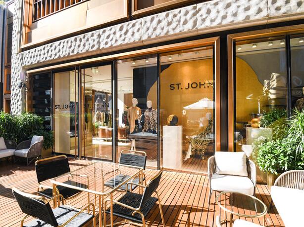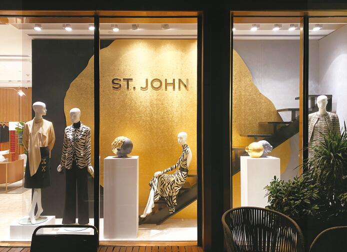橱窗中展示的ST.JOHN秋季系列表达了女性的力量与优雅,别具一格的针织SJacket气质小外套、独特的印花,精心打磨的金属饰件,每一件设计单品均融入了创意总监的巧思,以女性视角重新演绎品牌密码与基因。