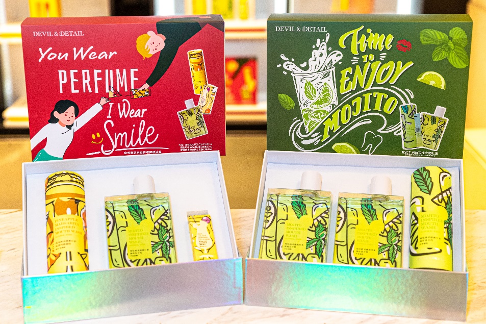 与此同时,恰逢岁末佳节及连卡佛170周年庆之际,DEVIL&DETAIL究式生活也将全新推出的节日礼盒系列——究式爱笑唇齿护理甄选礼盒及莫吉托之吻礼盒,于品牌专区进行重点展示。其中甄选礼盒组合搭配了鸡尾酒系列的三款高人气漱口水及去角质润唇膏产品,将“唇齿护理”的理念进一步升级;莫吉托之吻礼盒内含品牌高人气薄荷莫吉托漱口水瓶装及便携装双款,为讲究精致的情侣特别打造,随时随地吻出甜蜜与清新。