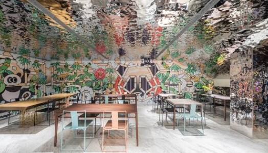 整体造型设计层层递进,直到看见匍匐于吧台安静等候的霓虹灯熊猫,点亮感官的瞬间也真正感受到品牌空间为人们带来的年轻而富创意的艺术内核。