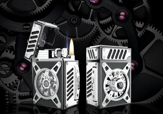 受到定制钟表和高级钟表精巧机械的启发,经过四年研发,新型Complication Lighter机械式打火机由钛、碳纤维和航空铝等高科技材质打造,共有200多个部件连接组成,通过镂空设计可以清晰看到齿轮运行之紧密结构,更有密码保护功能,是集匠心和工艺于一身的经典之作。