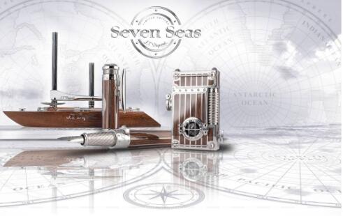 华丽的木质船舶中隐藏着烟具套装或书写工具套装。烟具套装包括华丽的天然漆面木纹效果Ligne 2朗声打火机,及一个雪茄钻孔器。书写工具套装包含天然漆面木纹效果滚珠笔,可用转换器变成钢笔,以及滚珠笔替换装和裁纸刀。这两款套装均采用独具匠心的精美漆面木制盒包装,印有七大洋地图。