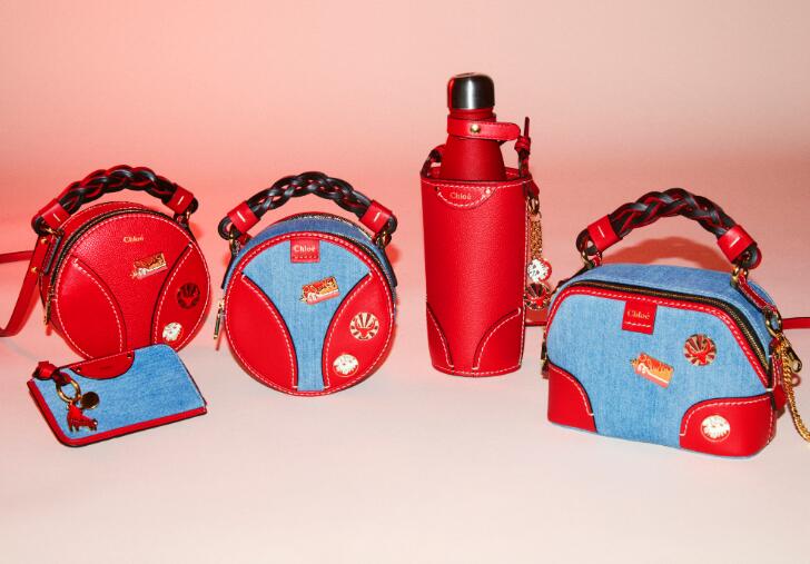 在本次的限定系列中,经典的Daria Mini和Drew手袋被注入节日元素,趣味再现——春节必不可少的中国红,与时髦的牛仔面料进行拼接,日常配饰亦为你带来一整年的好运。全新的手腕包和迷你双肩包设计延续Drew手袋的优雅风格,同时释放出别样时髦态度。Daria 系列包袋轻巧的款式,配以经典的皮质编制手提细节,以及摩登感十足的金属链条,可帮你轻松应对新年假期中的各种场合。而包上的限量别针装饰,也全然延续了品牌 2020秋冬系列作品中浓郁的艺术家气息,展现着当代 Chloé 女性富有深意的内心世界。