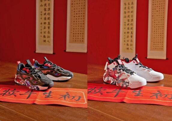 “初生牛犊”特别的图案设计除了在服装上展现外,也融合到鞋商品的设计中,主要有黑白不同配色的“霸道”系列。黑色款以酷黑为底,涂抹上新年的艳丽,中国山水线条勾勒出独特的复古时尚,白色款则与彩色碰撞,大气又不失特色,寓意少年一往无前。