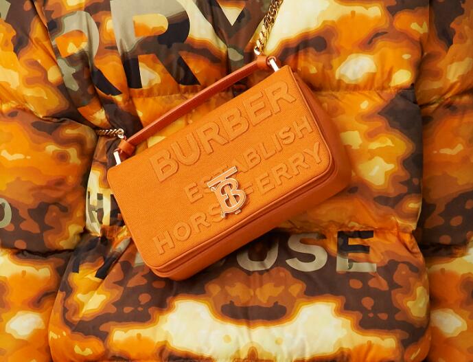 经典Burberry米色,配以活力满满、跳跃多变的亮橙色和蕨绿色。