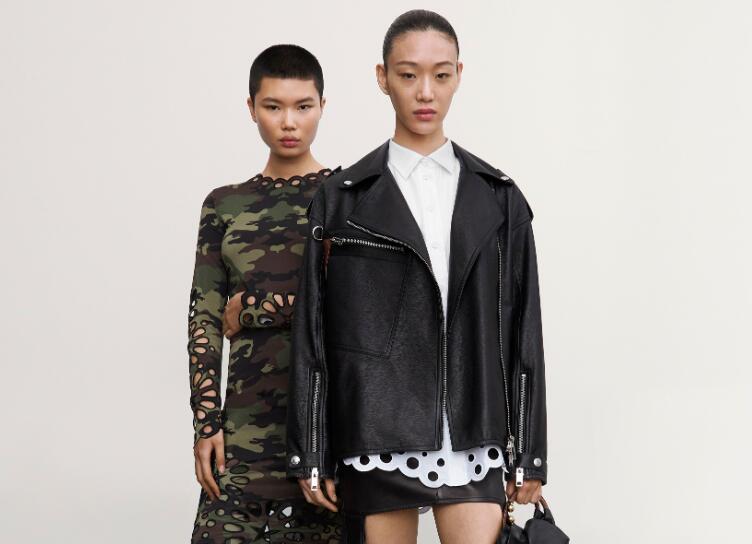 外衣、连帽衫、工装裤和短裙均加入了迷彩元素。Trench风衣、风雪大衣和飞行夹克饰以花卉裁片。运动系列单品采用徽章嵌花,粗格印花正面罗纹长裤,带光滑皮革背带的粒纹羊毛长裤。