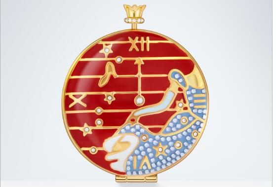 怀表时钟包装设计,红金条纹仿若皇宫的红毯阶梯。南瓜马车的午夜,零点将至灰姑娘匆忙离开,留