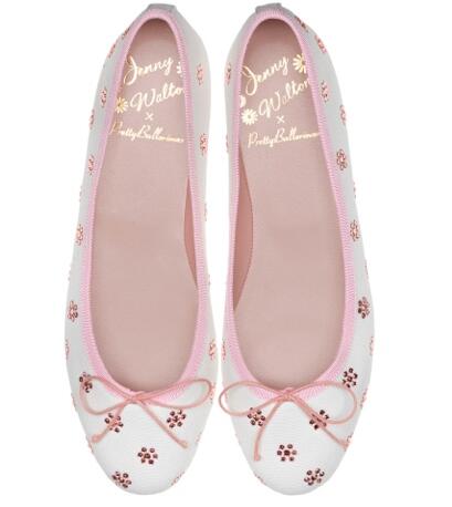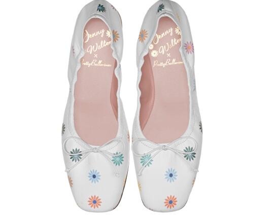 该联名系列包括四组芭蕾平底鞋,每组都具有共同定义Jenny Walton和Pretty Ballerinas的清新、精致和优雅的元素。