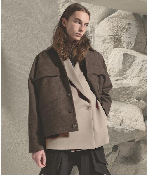 外套和裤子的剪裁是系列当中最为引人入目的部分。西装外套的版型采用了经典的双排扣风格,品牌通过对其细微的改动,如略微缩短手臂长度和肩部的圆润处理,来重新诠释这一永恒的风格。经典牛仔机车夹克,采用厚重的羊毛棉质面料,对细节进行重塑和简化,突出了优雅的结构。