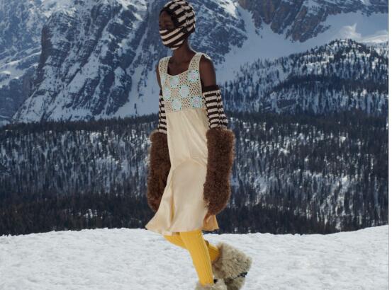 群体力量,精神归宿。Miuccia Prada集结多元女性,演绎2021秋冬系列。山间之旅由此开启,上演一场雪地时装秀,营造无与伦比的视觉冲击。“Miu Miu雪山俱乐部”梦想诞生,模特置身多洛米蒂山脉腹地,探索科尔蒂纳丹佩佐风光,无畏艰难,将身影留于镜头。它关乎逃离,关乎梦想,化幻境为现实。