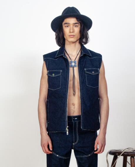 牛仔是美国西部风格不可或缺的元素之一,VICTOR LI全新2021秋冬系列运用了大脸的经典牛仔面料,采用拼接水洗、双色混染等丰富的形式呈现,并将牛仔骑马时所穿骑行裤的轮廓融入到了牛仔裤的设计里。牛仔拼接大衣同样采用了水洗工艺,再将牛仔夹克与西式大衣相拼接。品牌还用马鞍包的元素与其经典的无领衬衣做融合,每一处的细节设计都是希望通过此次全新系列重新塑造并诠释现代又时髦的西部牛仔形象。