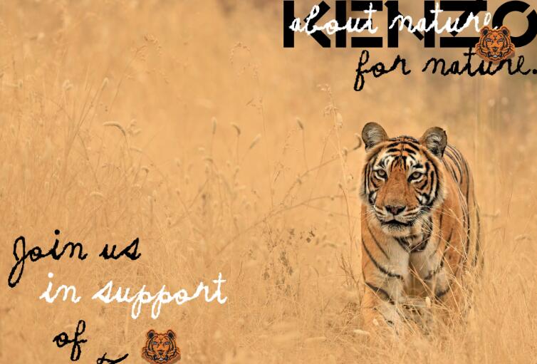 作为KENZO的图腾,老虎象征着品牌创立的理念: 强大的能量,自然的灵感来源,与充满活力的“东方丛林”精神。不幸的是这种迷人的猫科动物正濒临灭绝。自20世纪初以来,由于偷猎猖獗和栖息地的迅速丧失,造成全球野生虎数量下降超过95%,预计在2010年仅剩3200只。