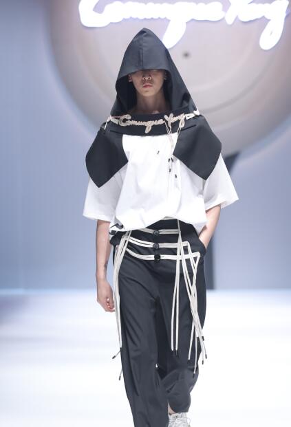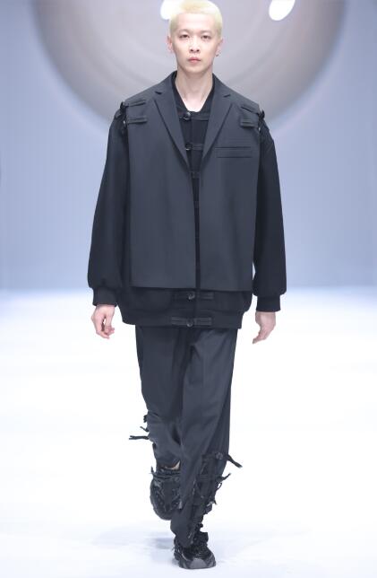 本季共有36套男女装共同呈现,继续由东方宾利名模军团倾情演绎。黑白灰的基调中以浅卡其色点缀其间,让整个系列既简约前卫,又不失一抹温暖亮彩;复杂的剪裁手法运用在灵动的垂坠面料上,最大程度地传达了设计的巧思;细节之处,设计师借鉴“盘扣”的形式,用鞋带做扣眼衔接每一个配件,增加服装的飘逸感和互动性,此外手绣的加入也将时装本身的质感提升到全新的层次。Comunque Yang空氧品牌标志性的自由拼搭概念也被运用在新系列中,穿着者通过改变服装各部件的连接关系,就能完成造型的二度创作,从而参与到服装再设计的过程中,实现自我真正的独特个性。