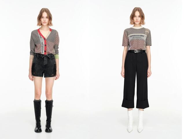 针织面料的柔美结合优雅的粉紫色调,营造出浪漫又神秘的氤氲气质,多种复杂的刺绣以及拼接和钉珠设计让高工工艺感满溢,整体细节流露出浪漫少女气质,再搭配灰色短裙/短裤,时尚感扑面而来。