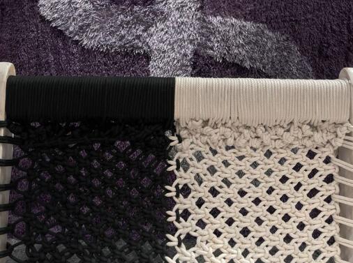 PRONOUNCE与装置艺术家Jialiang Zhong一同携手ASSEMBLE BY RÉEL核心团队共同打造独特的视觉体验空间。在芮欧百货三楼的ASSEMBLE BY RÉEL透明圆柱空间内,如人身高的紫色沙丘堆积如山,象征着“旅程”与“步伐印迹”的轮毂元素有如天外飞来之物般插入紫色沙丘,反射屋顶的投射光芒如神迹再现般使观者游离。由装置艺术家主导的三个庞大装置使用回收的轮毂与环保皮草命名为“器”与“&”的装置雕塑矗立在空间的三处坐标形成俯视的三角矩阵,神秘感的当代艺术审美的巧妙结合把身处空间其中的参与者带入到崭新语境。PRONOUNCE则选择延续环保皮草的材质包裹空间内即有的展示柜台与背景台等材质实现反转体验,深度延续effortless cool的品牌精神。而多处出现的圆形与无限绳索等视觉图形元素与艺术家使用“轮毂”所象征的生生不息、轮回前进的概念相得益彰,穿梭于多维度诠释着关于“〇”:这一恒定宇宙符号。