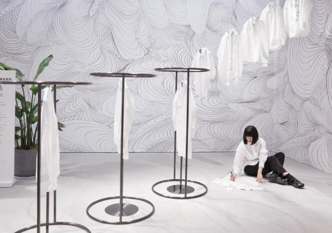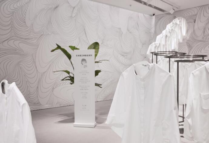 同时,MM麦檬以留白为主题打造出一场白衬衫艺术装置。摒弃繁复,回归简单,为穿衣注入一份生活态度。本次概念店运用合作艺术家王帅《三万线》作品,一件白衬衫,无定义,无边界,用简约黑白线条传递MM麦檬的穿衣态度。