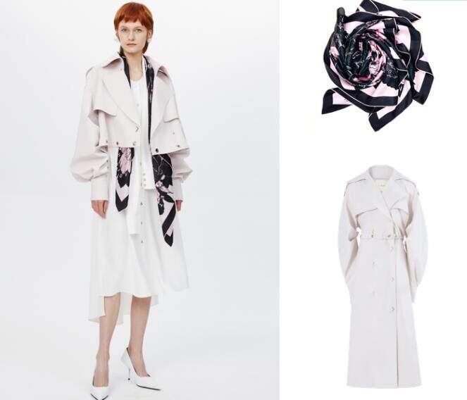MITHRIDATE 象牙白长款风衣,有一个绝妙功能 - 可拆卸 !让一件轻松变两件的时髦单品,既崇尚环保主义也彰显了独特设计功底。拆卸后的长款风衣变成了短款小外套,选择单穿或是叠加既凸显实用性又实现了最简单的百搭途径。象牙白浅色系一向给人留下干净素雅的印象,若想平衡整体形象上的色彩不妨配上一条 MITHRIDATE 花纹图腾丝巾,让造型中透露出职场的精致感。