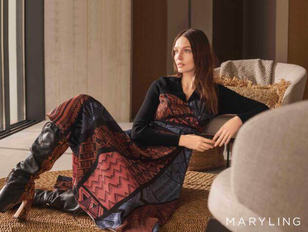 神秘又灵动迷人的色彩与抽象艺术元素,正是MARYLING 层次分明且风格独特的时尚宣言。并将更能彰显女性魅力的斜裁方式运用在半裙和连衣裙上。