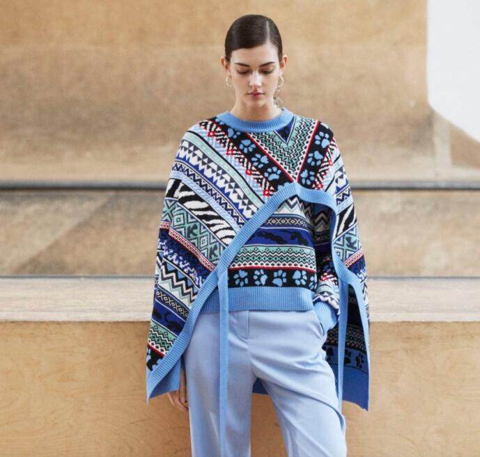 糅合现代时尚的审美意趣,K Krizia 2021秋冬系列针织衫以温暖的天然纱线编织而成,细腻的针织肌理增添了温柔质感,在这个冬日带给与如同潜水服贴身般的温暖舒适。品牌更将北欧传统的毛衣以流行色彩重新演绎,通过全新视角融入品牌标志性的动物印花元素(Animalier),例如海豹宝宝、哈士奇犬和企鹅等生活在寒冷地带的动物图案均被巧妙地运用在柔和色彩的毛衣之中,与传统女性针织服装形成鲜明对比。同时,动物印花亦被用于带有未处理剪裁饰边的超长风衣和背心上的复合技术面料上,经典的豹子图案经由几何抽象印花、满身印花、折纸效果,或以光影折射效果印花嵌入不同颜色的针织衫等形式得以重新诠释,呈现多元前卫的设计创想,展现新时代女性风尚。