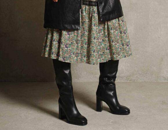 如果说这些由砖红色、乳白色、芥黄色及水绿色环保皮革制作而成的提花毛衣,和带有马衔扣细节的迷你连衣裙、衬衫裙、前扣式短裙及短裤唤醒了有关七十年代的审美记忆,那么柔软的皮靴、法兰绒格子长衬衫及廓形针织格子开衫可谓是重新诠释了九十年代“垃圾摇滚”(Grunge Rock)影响下的不羁时尚风潮。