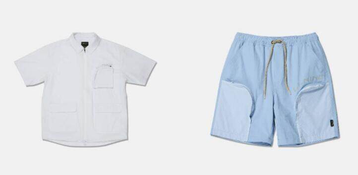 在本次LI-NING x CHINATOWN MARKET联名系列里,设计师在兼顾传统户外露营服饰功能性的同时,强化了视觉层面的表达及穿搭延展性,运用CTM所擅长的美式复古涂鸦图案结合创新面料,打造出一系列户外露营功能性与潮流表现力兼具的服装及鞋履单品。其中,户外属性的服饰单品有着耐磨、防晒、防泼水的功能属性,可满足都市户外爱好者露营远足等所需,同时在设计方面融入了更具潮流感的处理。户外马甲选用宽松版型钓鱼马甲呈现,廓形打造上首先赋予了衣款十足的穿搭表现力;细节上通过CTM 标志性半圆拉链设计配合多口袋结构,设计感进阶的同时赋予了户外单品必备的功能所需,轻松应对无论是自然或者是城市中的多变天气,3M反光加持提升夜间穿着的安全性,户外属性之外,马甲作为夏季大热的潮流单品,可单穿可叠搭助力打造更具看点的Urban Outdoor型格。短袖功能衬衫一改传统的衬衫纽扣设计,创意性地采用拉链结构,穿脱更加便利,同时也为衬衫注入更为直接的机能感;衬衫选用特殊的半透明材质,实现耐磨、防晒防雨的功能效果,胸口采用标志性弧形拉链兜盖,应对户外天气并缔造舒适包覆体验,在阳光明媚时便是潮流调性十足的造型亮点。