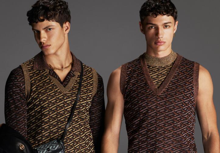 广告大片也惊喜呈现了全新的La Greca 印花托特包,创新的组合式设计可以随心添加小包和钥匙扣。男装设计亦加入新款的标志性图案,令原本层次丰富的针织衫、廓形利落的西装和大胆前卫的配饰加倍出众。