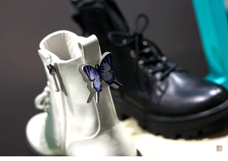 「鸢尾蝶」柔酷马丁靴,使用空压浮雕,浮影型动。这个可触摸的中国传统工艺,镌刻经典 ,浮雕之美历久弥新。其流畅的立体纹路展现蝴蝶的轻盈灵动,感受指尖浮凸纹理,虚幻之美仿佛尽在掌握,缥缈亦能镌刻成永恒。