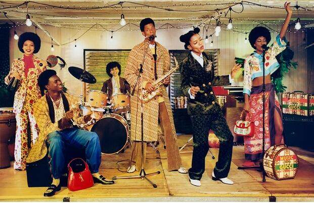 承袭音乐与时装之联结,GUCCI 100特别系列形象大片由米开理担任创意指导,摄影师Joshua Woods定格百年来音乐流变旅程中的重要时刻。形象大片以爵士乐、迷幻乐、日式朋克、迪斯科、嘻哈与非洲节拍乐六种不同流派的代表音乐与现场表演为灵感背景,探索时装与音乐这两种媒介关乎风格、影像、创意等方面的合奏与变奏。全新形象大片展现聚会的愉悦、舞蹈的动态美感、澎湃的音乐能量以及现场表演的感染力,共同诉说对于生命本真之热爱。从洋溢时代记忆的影像中,我们感知无论谱曲作乐、还是着装打扮,都是为了传递喜悦与分享欢乐。
