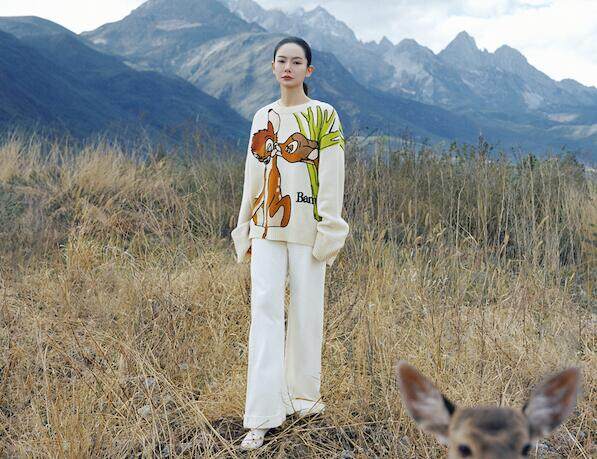 面对过度消费对气候与环境所造成的伤害,我们相信精简的择物与永续的穿衣是作出改善的答案。戚薇所穿的小鹿斑比系列毛衫遴选100%澳大利亚美丽诺羊毛,可追溯、无伤害、易降解,纯天然面料实现由身及心的可持续内涵,斑比的活泼图案则为关怀自然作出趣味的具象表达。在“一个地球”的语境下,这部隽永的动画电影已不仅是一个昨日之梦,更是经久不衰的善意提醒:我们与万物生灵都是地球的孩子,同呼吸、共命运,更有责任延续它的绿色未来。