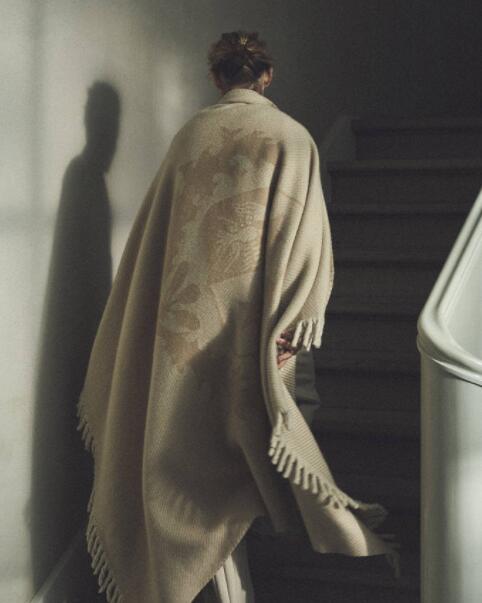 毛毯柔软而精致,尽显品牌纺织品制造传统和技术创新能力,其特征在于采用双面结构,可让两面呈现对比鲜明的色调和不同的图案。借助这种新颖百搭的方式打造色彩组合,从紫红到灰色、米黄到橙色、再到森林绿,玩转色彩魅力,尽显大地色系与金秋叶子的闲适之美。毛毯分为羊毛款、羊毛与棉混纺款以及奢华Coarsehair®羊绒款,营造出众舒适体验。本系列主打单品包括斜纹提花图案毛毯,点缀大号同色系Loro Piana标志,短边饰有镶边流苏。