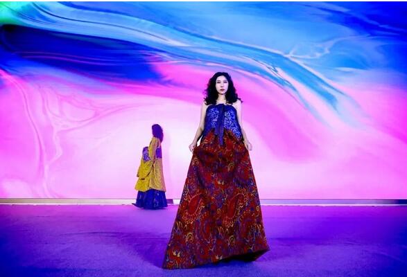 本次发布会主题为“岭南霞”,以岭南第一奇山丹霞山为灵感。丹霞山“色如渥丹,灿若明霞”,发布会整体以丰富的红色调搭配灿烂多彩的云霞作为主要色彩,再融入抽象化的云霞图案,将岭南风韵融入服装设计当中。